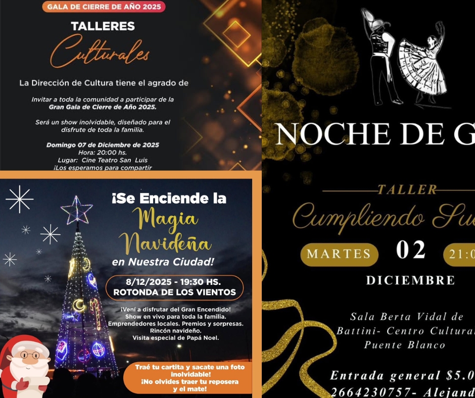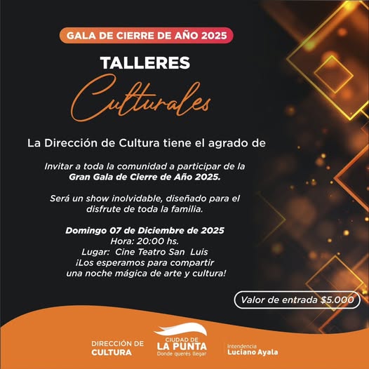 Luego, la agenda continuará con la esperada Gala de Cierre de Año 2025 de los Talleres Culturales. Este evento, que forma parte central de los eventos culturales en La Punta 2025, se realizará el domingo 7 de diciembre a las 20:00 en el Cine Teatro San Luis. La actividad reunirá a cientos de alumnos de diferentes talleres, que exhibirán los aprendizajes y producciones trabajadas durante el ciclo lectivo. Debido al carácter integrador de esta muestra, el espectáculo permitirá recorrer múltiples disciplinas, desde danza hasta teatro, música, expresión corporal y artes visuales. La Dirección de Cultura busca consolidar este encuentro como un espacio donde las familias puedan disfrutar de una propuesta variada, emocional y técnicamente cuidada. Asimismo, los organizadores anticipan que será un show con fuerte identidad local y con un despliegue escénico pensado para todos los públicos.