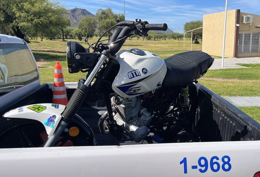 El rodado en cuestión era una Motomel S2 150 cc de color blanca, sin patente visible. Al requerirle el Documento Nacional de Identidad y la documentación del vehículo, el joven manifestó que no los tenía consigo.