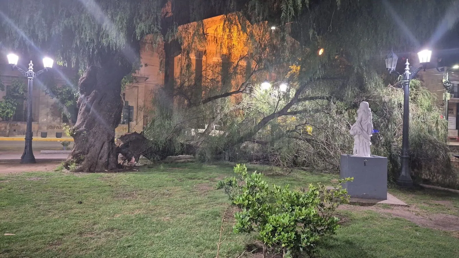 Una policía herida en Plaza Pringles fue el resultado de un incidente registrado este sábado por la noche en pleno centro de la ciudad de San Luis. El hecho ocurrió cuando un árbol de gran tamaño cayó de manera repentina en la zona cercana a Rivadavia y Pringles, frente a la Catedral. La uniformada realizaba tareas habituales de vigilancia en el área cuando el ejemplar se desplomó debido al fuerte viento registrado en la capital provincial.