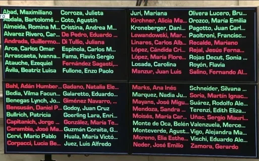Del otro lado, el rechazo estuvo liderado por Unión por la Patria. Votaron en contra Adán Bahl, Daniel Bensusán, Jorge Capitanich, Lucía Corpacci, Eduardo “Wado” de Pedro, Juliana Di Tullio, Anabel Fernández Sagasti, María Celeste Giménez Navarro, María Teresa González, Alicia Kirchner, Marcelo Lewandowski, Carlos Linares, Cándida López, María Florencia López, Juan Luis Manzur, Ana Inés Marks, José Mayans, Mariano Recalde, Martín Soria y Sergio Uñac.